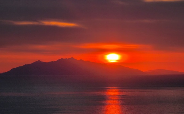 Aux premières heures du jour, le soleil émerge lentement derrière les crêtes de l’île d’Elbe, embrasant le ciel et la mer d’une lumière rouge profonde. Le calme de l’eau reflète cette lueur naissante, comme suspendue entre la nuit qui s’efface et le jour qui...