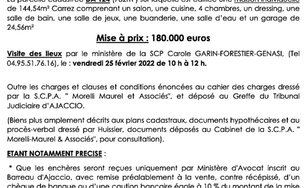 Corse Net Infos est habilité depuis le 1er janvier 2020 à publier les annonces judiciaires et légales des départements de la Corse-du-Sud et de la Haute-Corse. Pour publier vos annonces sur CNI : Par téléphone : 01.42.60.36.78 Par mail :...