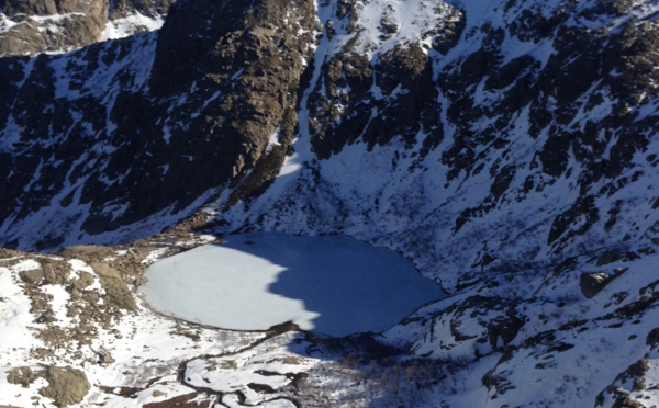 Lisandru Campocasso est, on le sait, un grand fervent de la montagne corse. De ses dernières pérégrinations sur les sommets de l'île il a ramené cette image de la "patinoire" du Melu, le bien nommé, dont la forme de pomme se devine sur cette photo. Si vous...