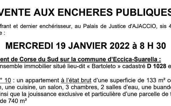 Corse Net Infos est habilité depuis le 1er janvier 2020 à publier les annonces judiciaires et légales des départements de la Corse-du-Sud et de la Haute-Corse. Pour publier vos annonces sur CNI : Par téléphone : 01.42.60.36.78 Par mail :...