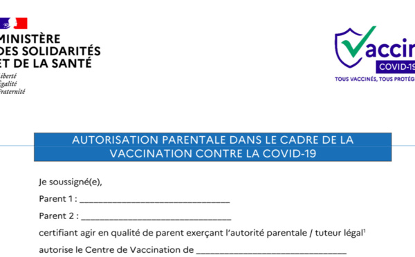 Ce mardi 15 juin la vaccination contre le Covid-19 s'ouvre aux 12-18 ans. Le ministère de la Santé a diffusé l’autorisation parentale à télécharger et à remplir. A partir de ce mardi, les adolescents de 12 à 18 ans pourront être vaccinés contre la Covid-19 en...