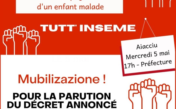 L'association Inseme appelle à la mobilisation générale ce mercredi 5 mai à 17 heures devant le préfecture d'Ajaccio. Face à l'absence de respect des engagements pris par l'Etat à de multiples reprises, l'association entend mobiliser l'ensemble de la société...