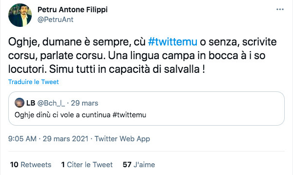 Tuttu vene da l’IUT è a classa di Tecniche cummerciali di Corti. Petru Antone Filippi, prufessore di Corsu, hà lampatu sta sfida à i so studienti. Fà campà u hastag « twittemu. » « Mi dicia chì cù una centina di studienti, si videria nantu à Twitter, hè vera....