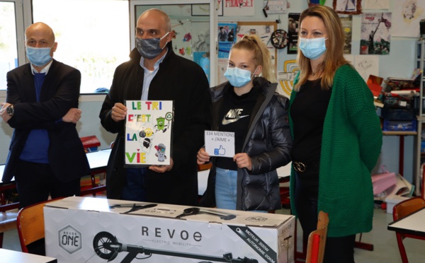 Lauréate du concours de dessins organisé dans le cadre de la semaine européenne de réduction des déchets, Maëliane Lepere, élève du Colle JF-Orabona de Calvi a reçu son prix ce 12 janvier
