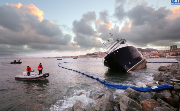EN IMAGES - Un barrage flottant autour du bateau des phares et balises échoué à Ajaccio
