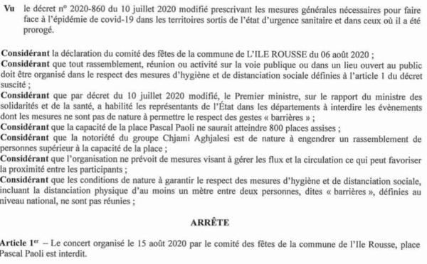 A l'Ile-Rousse c'est l'incompréhension après l'annulation ce samedi soir par le préfet de Haute-Corse du concert du groupe I Chjami Aghjalesi alors que celui de la veille du groupe Voce Ventu avait été maintenu. Annulation de dernière minute prise par mesure...