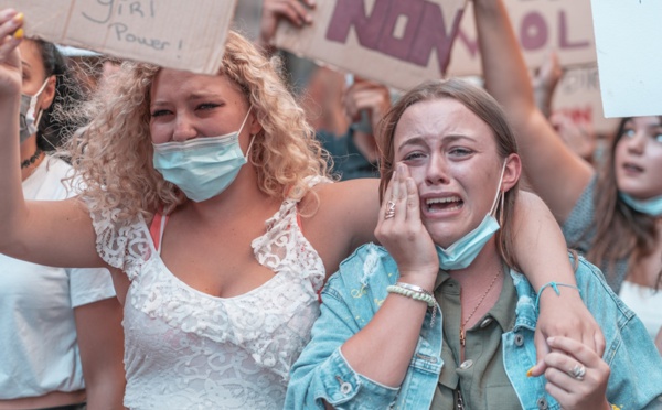 Jeunes filles en pleurs à la manifestation contre les violences sexistes et sexuelles à Calvi