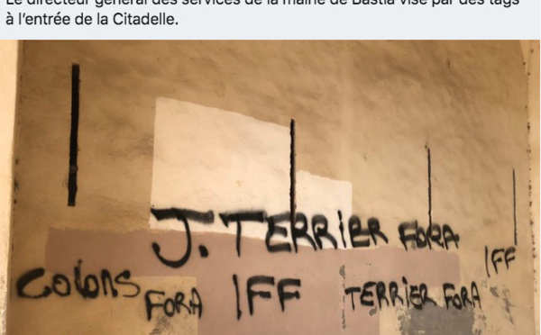 Des inscriptions injurieuses à l'encontre de Jérôme Terrier, directeur général des services de la ville ont été découvertes ce mardi matin sur un mur de l'entrée de la citadelle de Bastia. On pouvait lire notamment "Terrier Fora", "IFF" ou encore "colons...