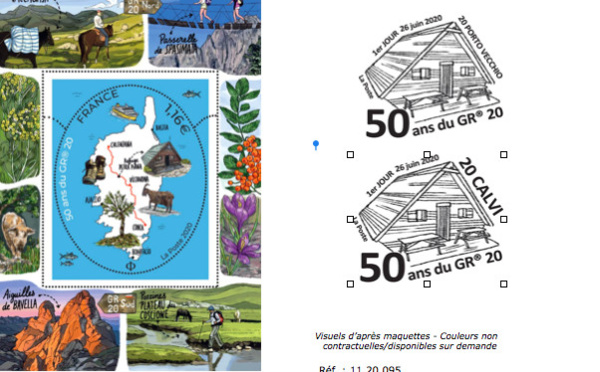 Les 26 et 27 juin 2020, La Poste dévoile en avant-première aux bureaux de poste de Calvi et Porto-Vecchio un bloc timbre illustré par différentes étapes du plus fameux et plus sportif des sentiers de grande randonnée le GR®20 à l’occasion de son 50ème...