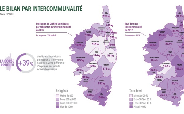 Le Syvadec, Syndicat de valorisation des déchets, a dressé mercredi le bilan du tri en Corse en 2019. Un taux de tri en hausse de 32 à 36% par rapport à 2018. En Corse ce sont 241.080 tonnes de déchets ménagers qui ont été collectées en 2019 soit 730 kg...