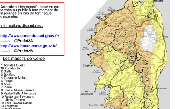 La préfecture de Corse indique que ce mercredi 29 juillet le risque incendie sera assez élevé en Balagne, dans le désert des Agriates, dans le centre de l'ile et dans l'extrême Sud en raison des fortes chaleurs et du manque de pluie. Soyez donc vigilants et...