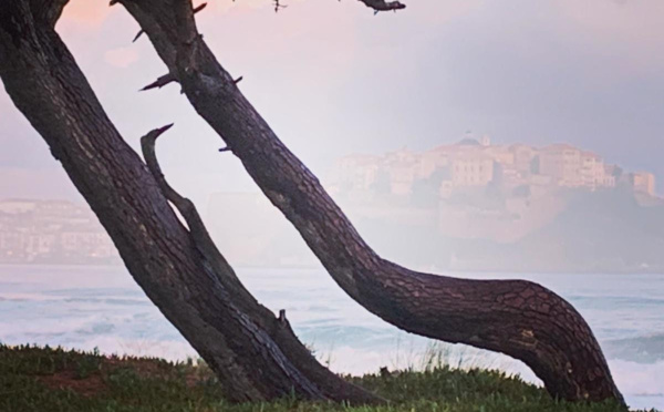 Calvi que l'on devine dans la brume matinale, vu depuis la pinède et ses arbres torturés par la nature : la belle image est de Marco Mora. Si vous aussi, comme lui, avez un cliché - que vous avez réalisé - une belle photo de votre village, un coin de Corse à...