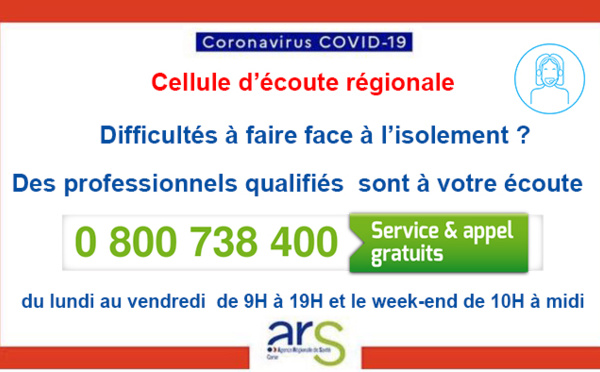 Cette période de confinement peut être pour certains source de stress et d'anxiété. Eloignée de nos famille et nos proches on peut ressentir le besoin de parler essentiel. L’ARS de Corse a donc mis en place une cellule d’écoute pour aider les personnes à...