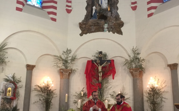 En ce dimanche des Rameaux bien particulier en raison du confinement, le Père George Nicoli, curé de Notre Dame de Lourdes a, comme il le fait chaque jour à 9 heures ans son église, célébré la messe à huis-clos.