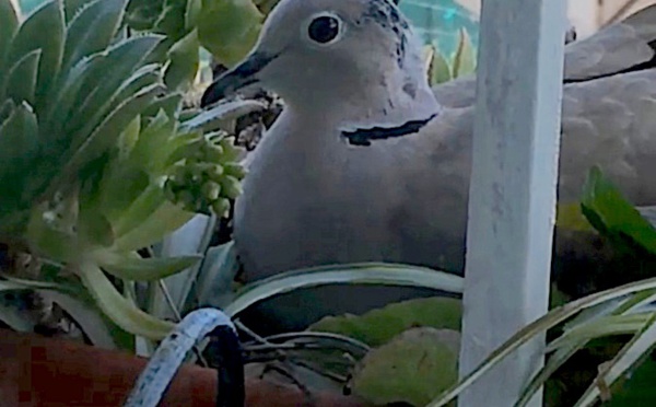 Loin d'être effarouchée, une tourterelle a choisi pour la seconde fois de tisser son nid dans une jardinière ornant le balcon d'une résidente domiciliée Résidence Champeau à Calvi. La ponte effectuée, la tourterelle domestique va se relayer avec le mâles pour...