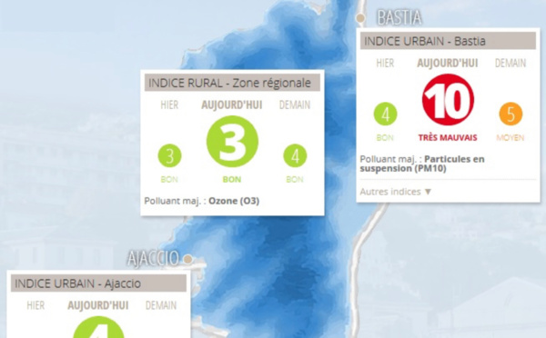 "Depuis samedi la Corse est touchée par un flux d’Est qui provoque une augmentation des particules en suspension en Haute-Corse provenant en grande partie d’Europe centrale. Cet import s’accumule avec les particules produites de façon locale notamment...