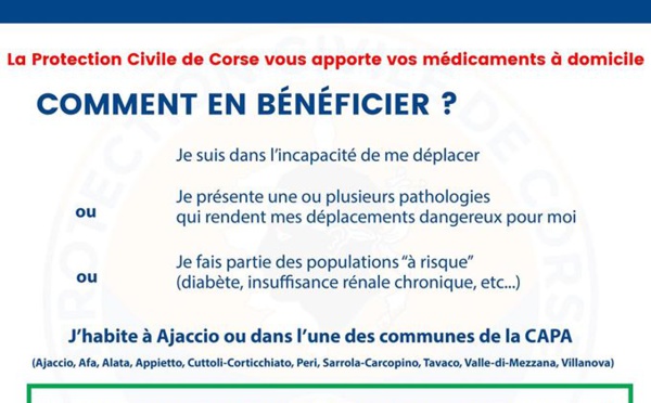 Depuis mardi 24 mars, les femme et les hommes de la Protection Civile de Corse, en partenariat avec la Mairie d’Ajaccio, la CAPA et le syndicat des Pharmaciens de Corse du Sud, livrent à domicile des médicaments. Ce service gratuit s’adresse aux patients ne...