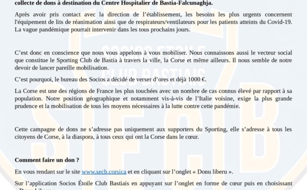Coronavirus : Les Socios lancent un appel aux dons pour l’hopital de Bastia
