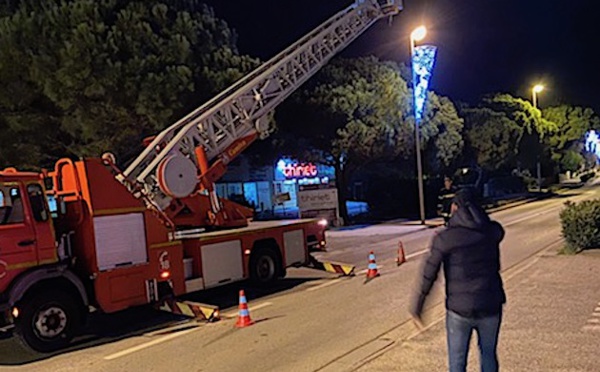 Les pompiers de Calvi ont du intervenir dans la soirée de dimanche à l'entrée de la Ville en raison du danger des illuminations de Noël qui menaçaient de s'écrouler en raison du vent violent qui souffle depuis plus de 24 heures