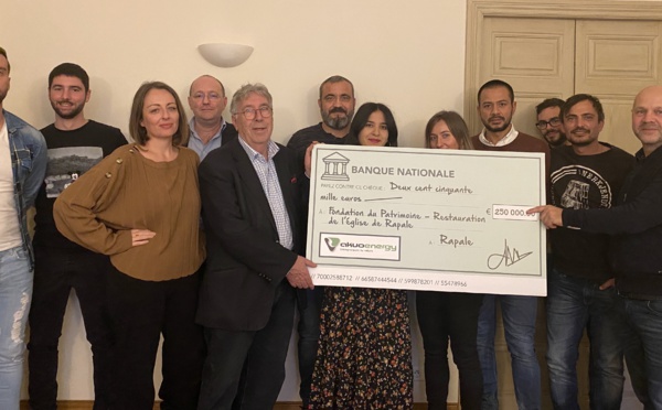 La fondation du patrimoine a reçu un chèque de 250.000 euros de la part de la société corse Akuo Corse Energies pour la restauration de l'Eglise de Rapale. "Un don exceptionnel" pour René Lotta, délégué régional de la fondation. L'église Santa Maria Assunta...