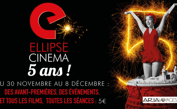 L'Ellipse fête ses 5 ans le 3 décembre. A cette occasion le cinéma propose une semaine de Festivités avec films en avant-première, soirée spéciale, opération tarifaire, jeu-concours... Et voilà déjà passé cinq ans, un lustre, une demi-décennie pour Ellipse...