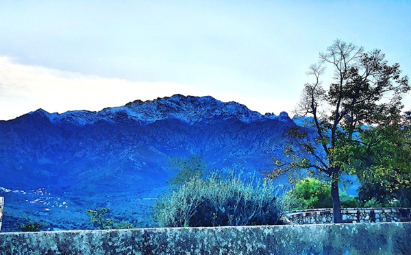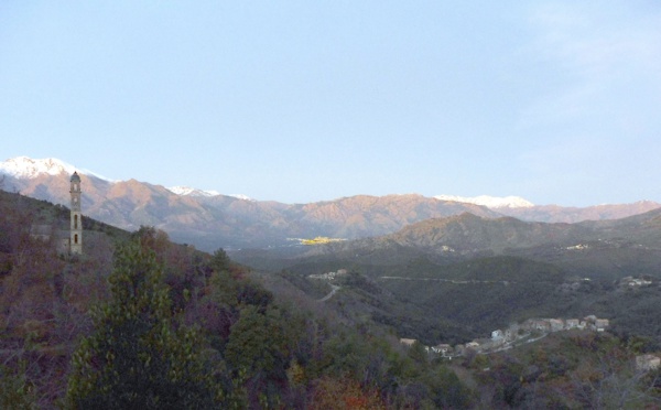 Raoul Pioli propose aux lecteurs de CNI cette vue de la cuvette de Corti avec ses cimes enneigées , prise à partir de Sant'Andria di Boziu. L'église de Sant'Andria que l'on voit à gauche est à 870 m d'altitude. Le village au premier plan est ce lui de Rebbia,...