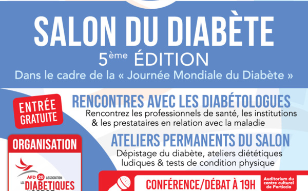 L’Association les Diabétiques de Corse organise cette année encore le « Salon du Diabète en Corse » dans le cadre de la « Journée Mondiale du Diabète ». La 5ème édition du Salon du Diabète en Corse aura lieu le jeudi 14 Novembre 2019 à partir de 10 heures à...