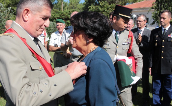 Promue au grade d'officier de l'ordre national du Mérite Jeannine Maraninchi décorée à Calvi par le général Puga