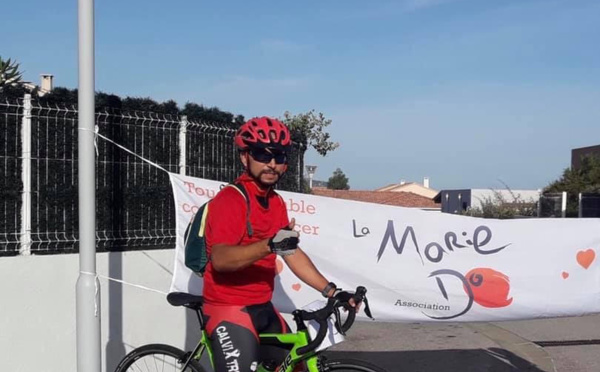 Défi sportif relevé et réussi pour Morad Boustatin qui bien qu'étant néophyte en la matière a parcouru 300 km à vélo pour soutenir l'association de la "Marie-Do" et contribuer à sa manière dans la lutte contre cette fichue maladie qu'est le cancer