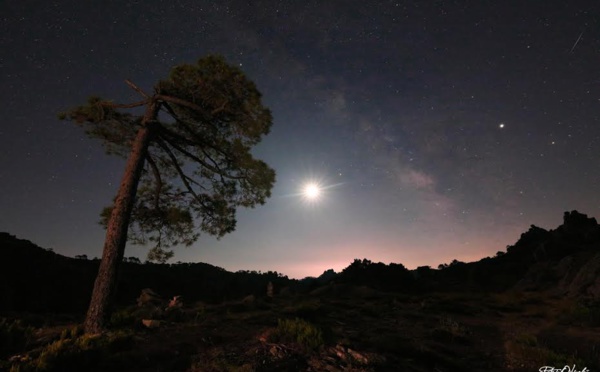 Il est 23 h 30 . ce 16 Juillet 2019 : la lune est partiellement éclipsée. Sa zone d'ombre est à son maximum. Un fin croissant lunaire brille, qui laisse apparaître la Voie lactée. La forêt de l'Ospedale révèle dans la nuit, son charme, son envoûtement......