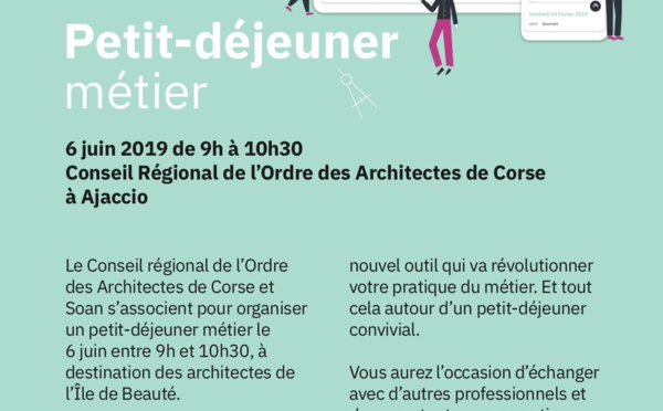 « Soan », en partenariat avec le Conseil régional de l'ordre des Architectes de Corse, convie l’ensemble des architectes de l’Ile de Beauté à ses deux petits-déjeuners métier les 6 et 7 juin prochains à Ajaccio et Bastia. Soan »? C'est le tout premier...