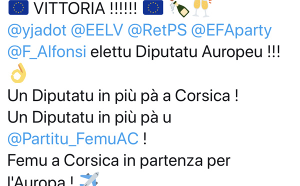 A la veille de cette élection Gilles Simeoni, président du Conseil exécutif de Corse, avait invité les corse a voter François Alfonsi afin de saisir "l'occasion d'internationaliser la cause corse" et "apporter un poids supérieur pour peser sur le rapport de...