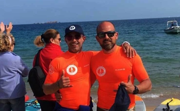 Arnaud Ledrich - Gilles Ricordel, est la seule équipe de deux a avoir réussi la traversée en stand up paddle entre Calvi et Fréjus, en nageant chacun18 heures