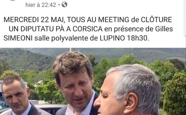 Le candidat de Femu a Corsica François Alfonsi de liste EELV-Régions et Peuples Solidaires aux élections européennes organise un meeting de clôture de campagne, mercredi 22 mai 2019 à 18h30, a la salle polyvalente de Lupinu en présence de Gilles Simeoni.