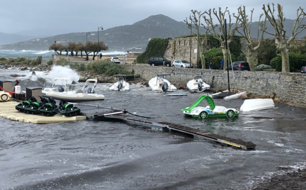 Tempête à l'Ile-Rousse : jet skis et bateaux emportés par les vagues