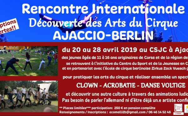 Dans le cadre de la Rencontre internationale, découverte des arts du cirque, un échange jeunes de la Région Corse et de Berlin aura lieu du 20 au 28 avril à Ajaccio. A l'issue, un spectacle sera présenté