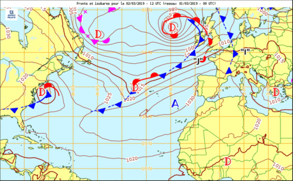 Mars débute comme février a régné, avec du soleil. La Corse se trouve coincée entre un anticyclone 1030 hpa centré sur l’Espagne et une dépression 2010 hpa située en Grèce. Pas de perturbations en vue donc mais une situation favorable aux formations...