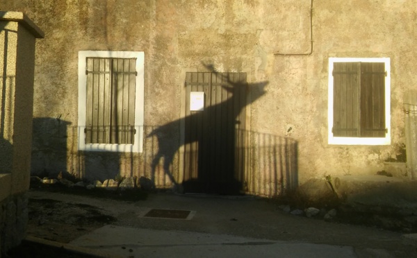 Fin d'après-midi dans les rues du village de Quenza avec l'ombre projetée d'un cerf bramant au crépuscule d'une journée d'hiver. L'illusion est parfaite car le cervidé n'était, bien entendu, pas présent au coeur du village de l'Alta-Rocca il s'agissait de...