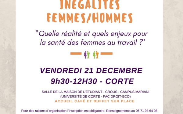 Vendredi 21 décembre de 9h30 à 12h30 à La Casa studiantina du Campus Mariani à Corte aura lieu la deuxième édition de l'Université de la Mixité et l'Egalité Professionnelle organisé par l' Aract Corse et le LABOMIX, avec l'appui de la Mission Départementale...