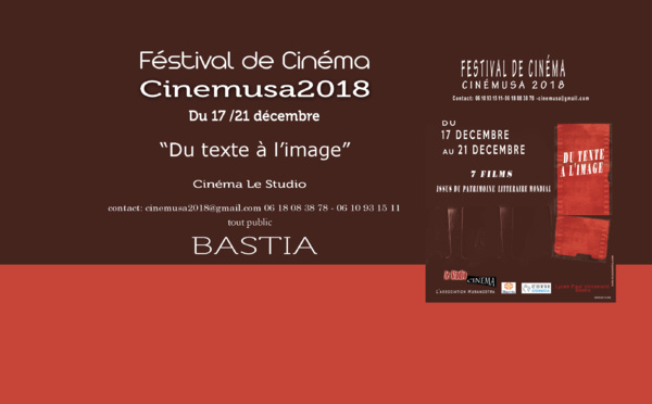 Du 17 au 21 décembre aura lieu au cinéma Le Studio à Bastia, se déroule la 9ème édition du festival CINEMUSA "Du texte à l'image". Plus de 1300 collégiens et lycéens de plusieurs établissements scolaires du grand Bastia participeront à ce festival qui...