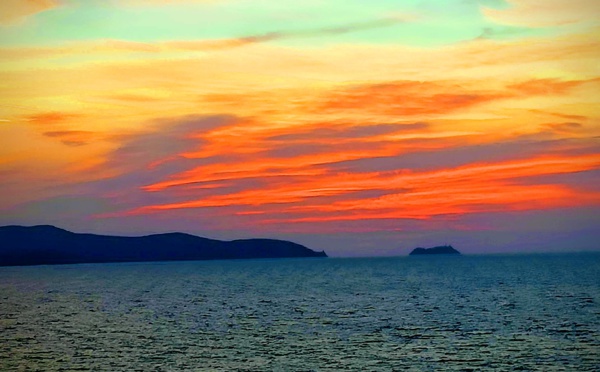 La pointe du Cap Corse et la Giraglia qui lui fait face dans un kaléidoscope de couleurs. C'est la dernière image que l'on a de la Corse lorsque on la quitte par la voie maritime depuis Bastia. Brice Grzesiak n'a pas laissé passer l'occasion de fixer un tel...