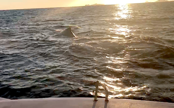 Rencontre (filmée) impromptue dans le golfe d’Ajaccio : une baleine vient dire bonjour aux plaisanciers du jour. Un instant très bref mais un beau moment d’émotion sur fond de coucher de soleil