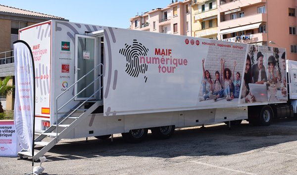 Le MAIF numérique tour s'est installé, depuis jeudi à Ajaccio, aux abords de la place Miot, sur le parking de l'ancienne caserne Grossetti, et sera ouvert samedi au public. Un village numérique et un camion entièrement équipé accueillera les visiteurs....