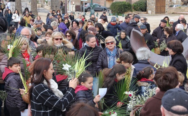 l'Abbé Marcin Monka, archiprêtre de l'Ile-Rousse a procédé à la bénédiction des rameaux sur la promenade d'a Marinella in Lisula Rossa. Cette bénédiction marquait le début des cérémonie de la semaine sainte