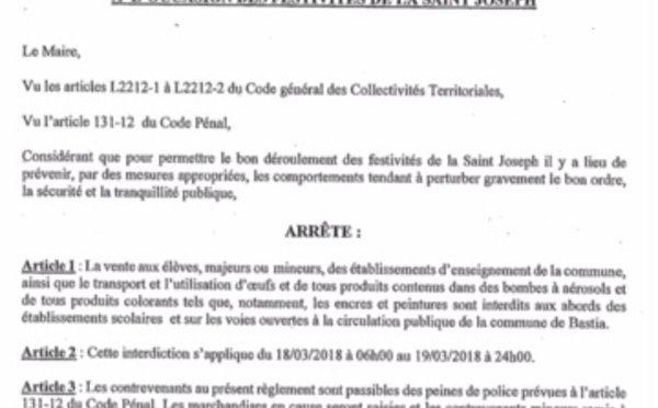Saint Joseph à Bastia : Ni bombes aérosol, ni œufs !