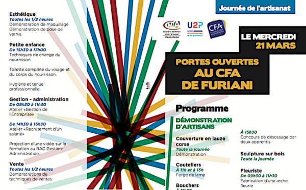 Organisée conjointement par les chambres de métiers et de l’artisanat et l’U2P, la Semaine Nationale de l’Artisanat regroupe sous un label commun des initiatives locales de promotion de l’artisanat. La Chambre de Métiers et de l’Artisanat de la Haute-Corse...