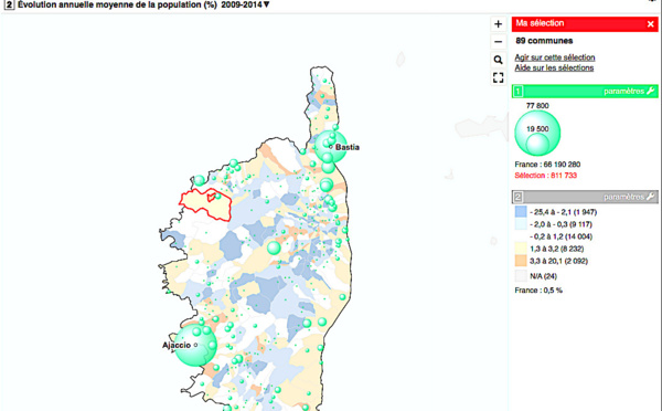 L’Insee vient de publier les derniers chiffres de recensement. Officiellement, les départements de Corse comptent désormais 327 283 habitants. Cliquez sur la carte pour connaître la population de votre commune.