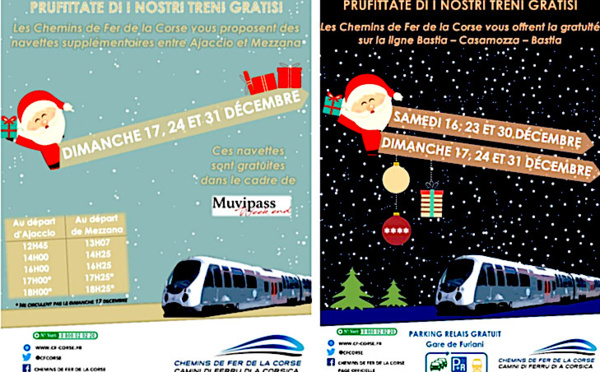Pour les fêtes de fin d’années, les Chemins de Fer de la Corse gâtent leurs usagers. En partenariat avec la Capa, pour l’opération « Muvipass » des navettes supplémentaires gratuites sont mises à disposition pour les trois derniers dimanches de...