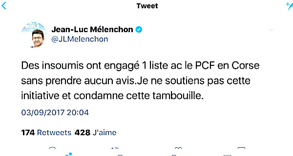 Le PCF Corse et la "tambouille" de Jean-Luc Mélenchon