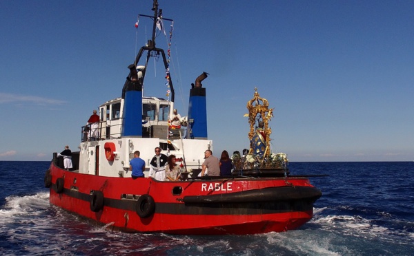 La statue de la Vierge à l'Enfant de l'église de Saint-Charles de Bastia a pris la mer dimanche après-midi pour, à bord du remorqueur "Rable" être transportée jusqu'à quelques encablures du sanctuaire de Notre-Dame de Lavasina. Une belle cérémonie organisée...
